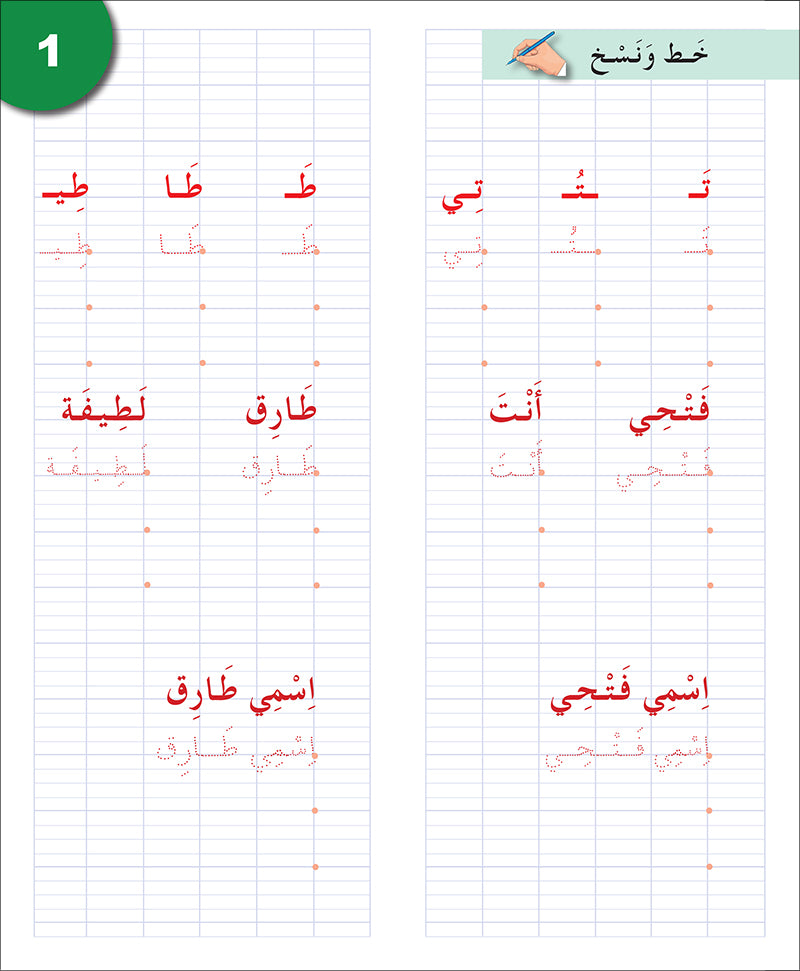 يتدرّب الطلاب من خلاله على كتابة الحروف العربية، ثم الكلمات والتعابير.
